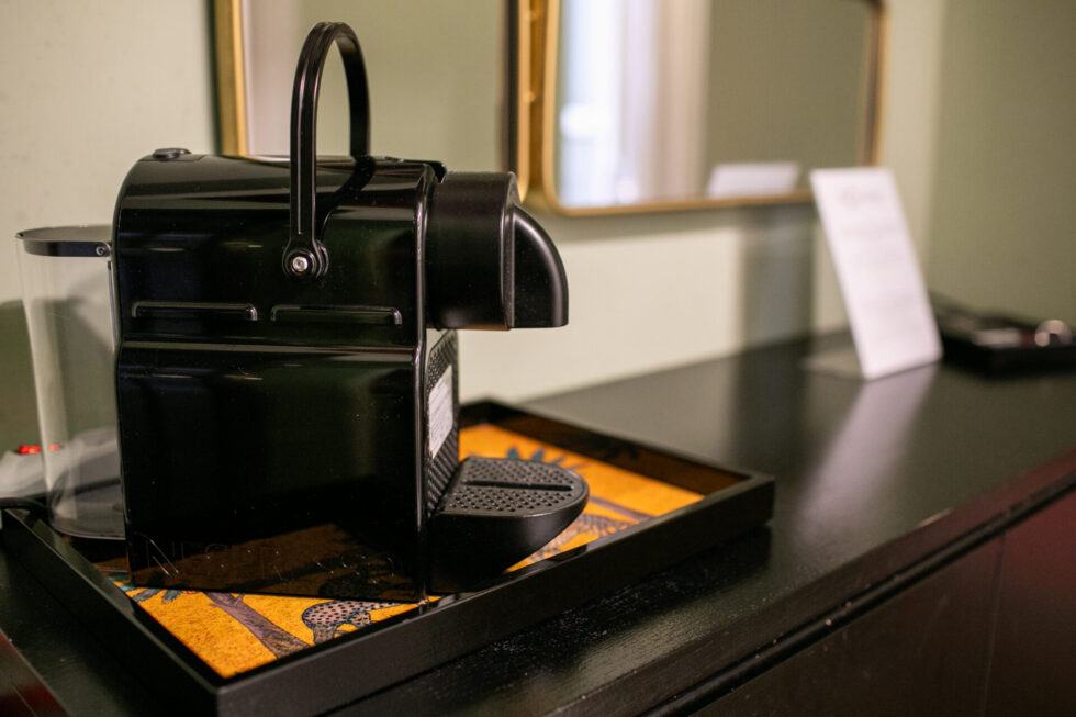 Bar/kitchenette with kettle, cooking utensils, Nespresso.