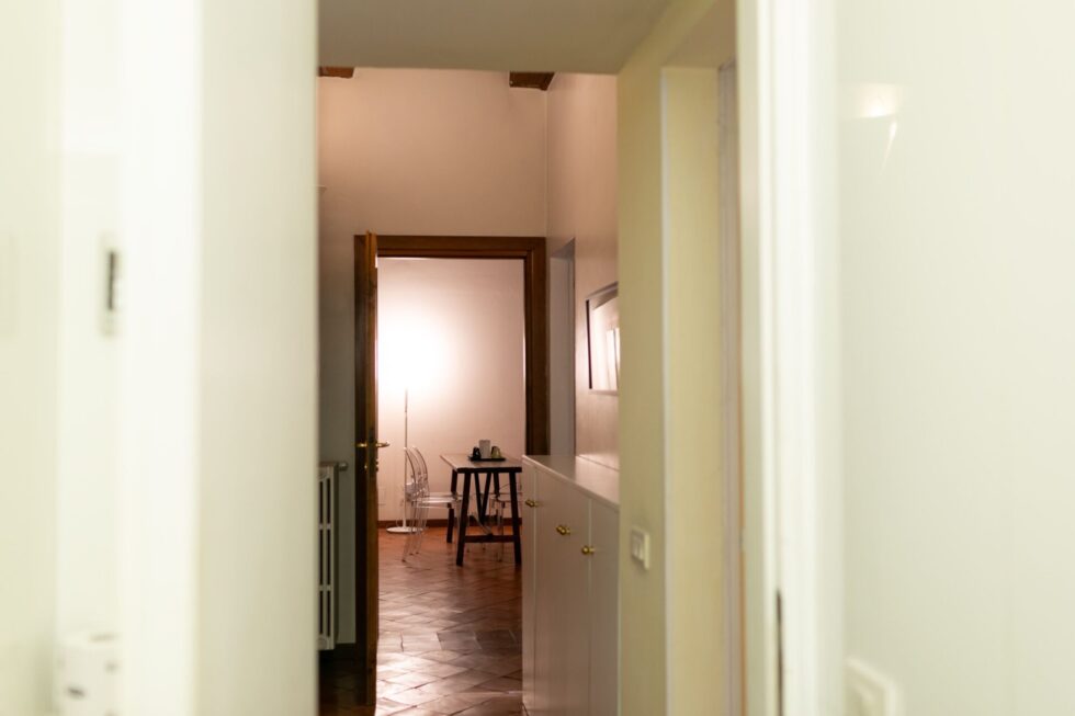 The flat is located on the fourth floor of the historic 17th-century building in Via Vittoria 64.
