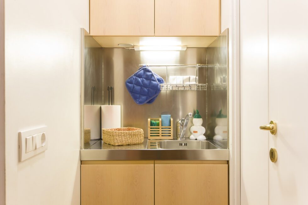 Angolo “bar”/cucinotto con bollitore, utensili da cucina, Nespresso.