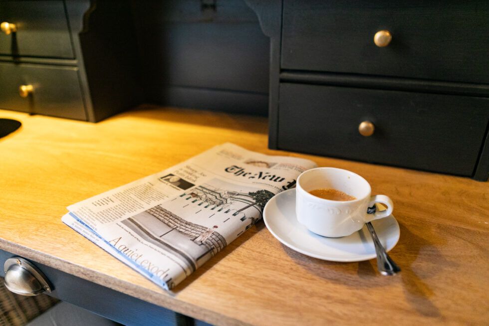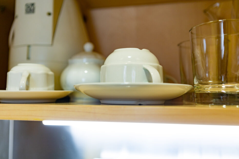 Angolo “bar”/cucinotto con bollitore, utensili da cucina, Nespresso.